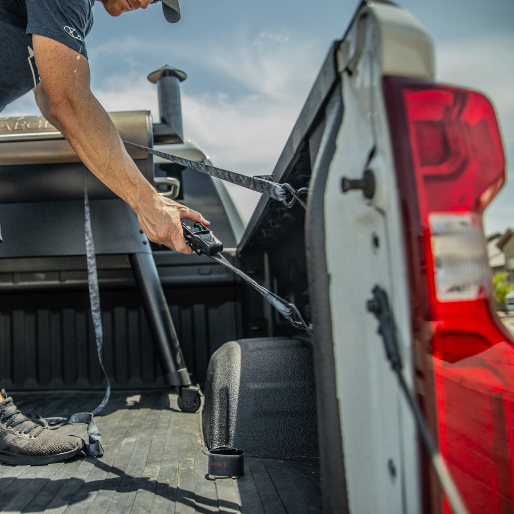 Each strap is built tough with a 607 lb working load limit and a 1,823 lb max break strength, giving you the confidence to lock down ATVs, kayaks, coolers, and whatever else you need to haul—no shifting, no worries.
